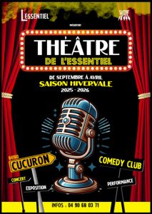 La programmation aura comme axe principal la comédie de divertissement comme le stand-up, doublé éventuellement d’autres formes culturelles telles que des spectacles de danse, des colloques et débats,résidences d’artistes, petits concerts de musique et de chant, des lectures,des expositions et différents événements…5 mois de travaux ont été nécessaire (uniquement des entreprises du pays d’aigues) et validation par la société de contrôle l’APAVE avec l’autorisation d’ouverture le 25 juillet 2025 par la commission de sécurité.